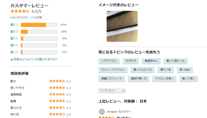 Amazonでの【ReFa 】リファビューテック ストレートアイロンの口コミ・評判
